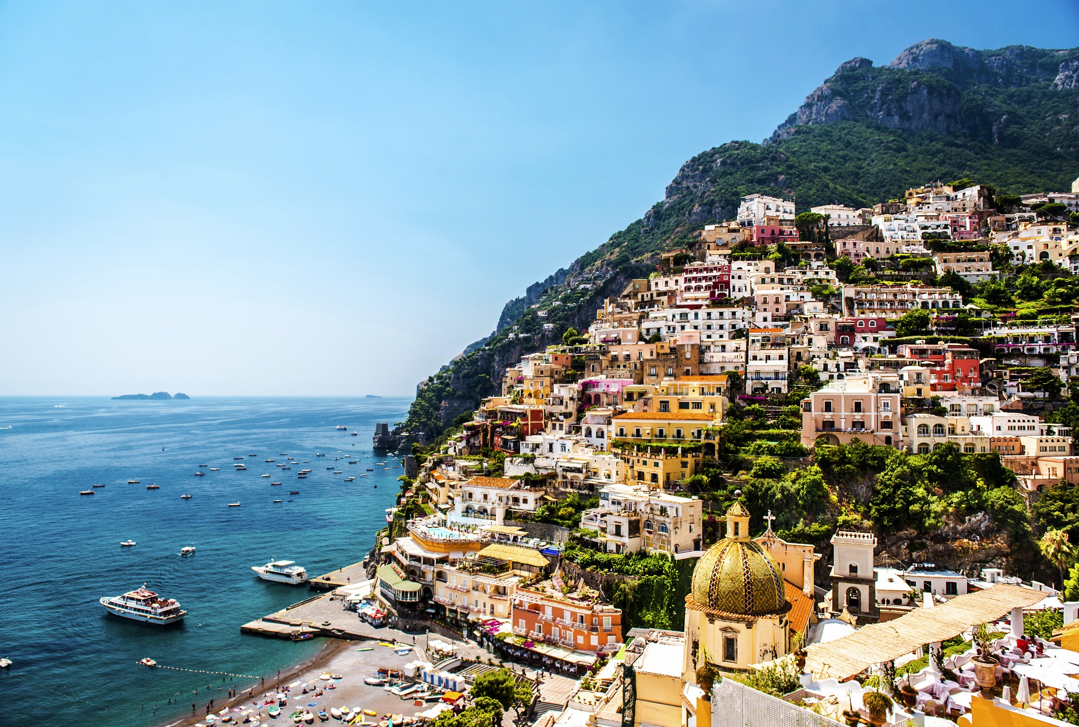 E poiché a Positano tutte le strade portano al mare, esiste solo una conclusione possibile a un entusiasmante tour sulla Costiera. La Spiaggia Grande, lo dice già il nome, è la più estesa di tutto il litorale, uno snodo marinaro che attira i visitatori con la sua atmosfera cosmopolita, i bar e i ristoranti. Più intima è la spiaggia di Fornillo, poco distante dalla prima. Trentasette chilometri dopo, forse è arrivato il momento di fermarsi, stendersi al sole e godersi un po’ di meritatissimo dolce far niente.