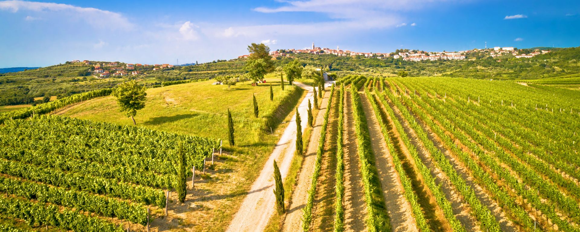 Hilltop village of Motovun in Istria, Croatia, surrounded by vineyards and truffle-rich forests.